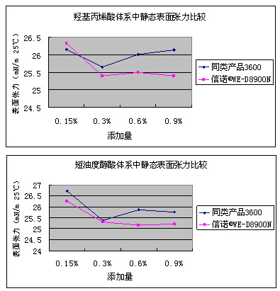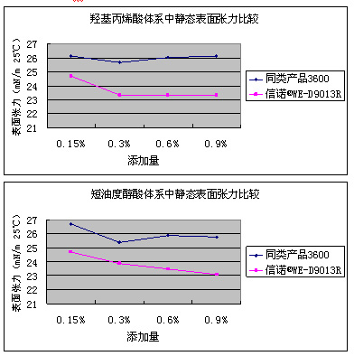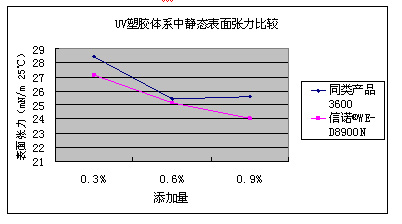 UV塑膠體系中靜態(tài)表面張力(mN/m 25 ℃):