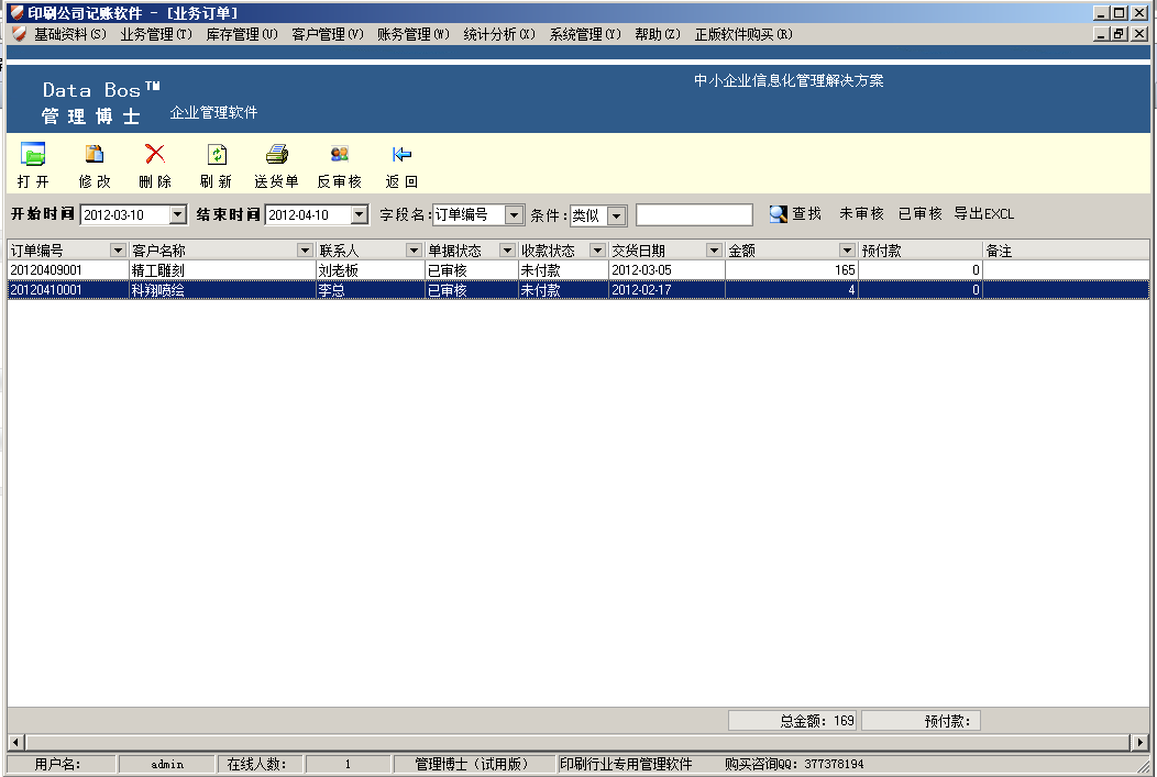 [ ↑↑ 印刷業(yè)務(wù)開單,合同打印 ↑↑]
